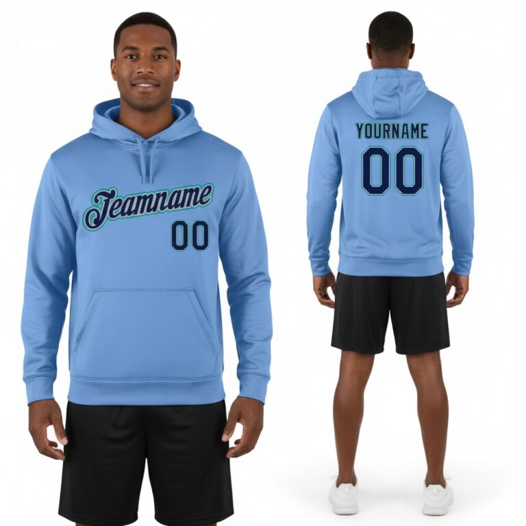 Experience the perfect blend of style and personalization with our Custom Aqua Light Blue Hoodie. Designed to let you add names, numbers, logos, or unique designs, this hoodie transforms your vision into reality. Crafted with breathable, moisture-wicking fabric, it ensures lasting comfort and durability for everyday wear.