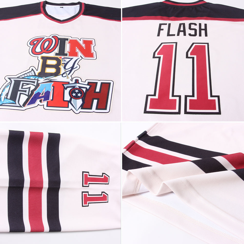 Custom Black Cream Hockey Crimson Jersey – Design Your Own Hockey Uniform