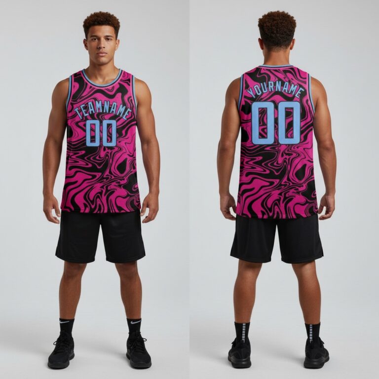 Elevate your team’s look with our Custom Black Pink Basketball Light Blue Jersey, designed for ultimate personalization. Easily create your perfect uniform by adding names, numbers, and logos to showcase your team’s unique identity. Crafted with breathable, moisture-wicking fabric, this jersey ensures comfort and durability during every game.