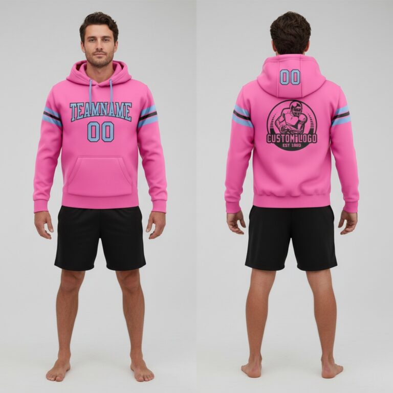 Create a unique statement with our Custom Black Pink Hoodie, tailored to your style and preferences. Easily design your own hoodie by adding names, numbers, logos, or personalized graphics to make it truly yours. This seamless customization process empowers you to showcase team spirit or individual flair with unmatched creativity.