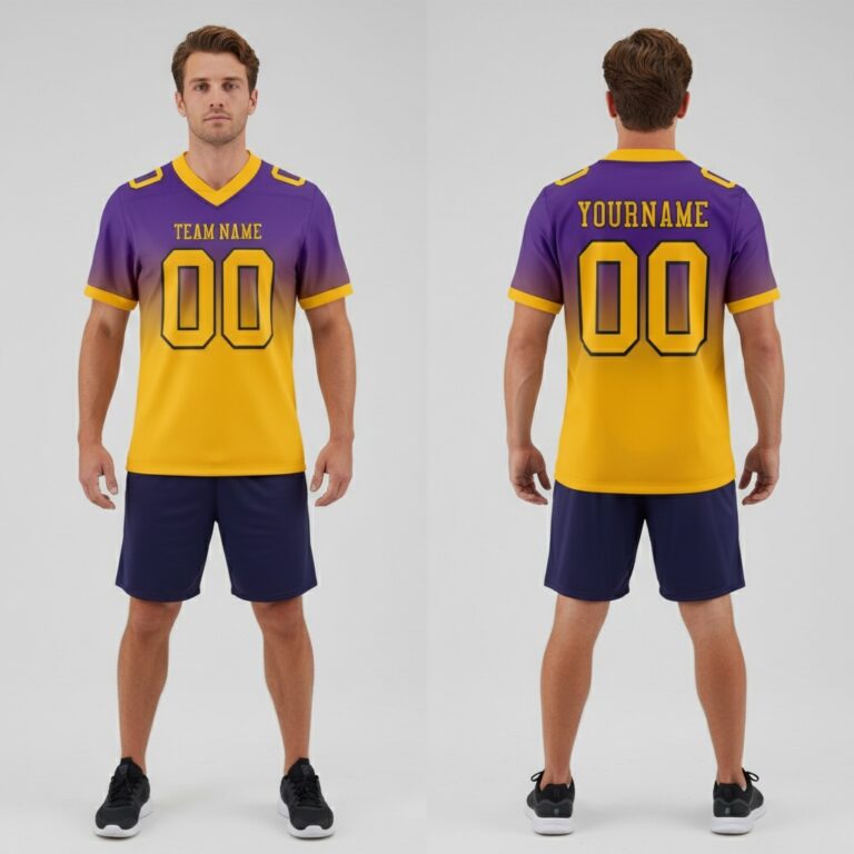 Personalize your team’s look by customizing designs, adding names, numbers, and logos to showcase your unique identity. Boost team unity and confidence with a professional appearance that stands out on the field. Explore more options in our Custom Purple Football Jerseys collection to find the perfect fit for your squad.