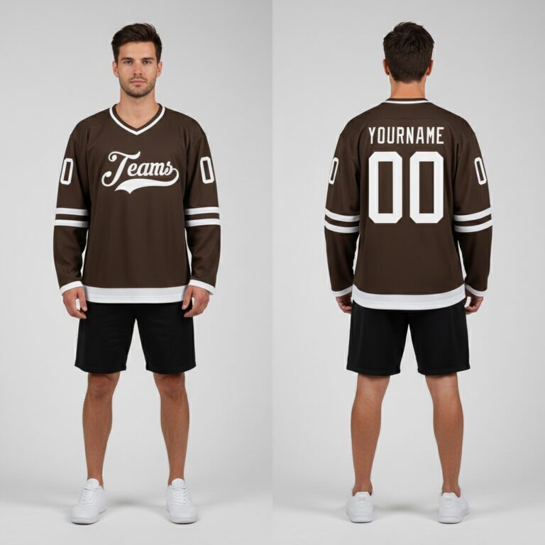 Experience the perfect blend of style and performance with our Custom Brown Hockey White Jersey. Designed for ultimate customization, you can easily add your team’s name, player numbers, and logos to create a unique look that stands out on the ice. Each jersey is crafted to reflect your team’s identity and professional spirit.