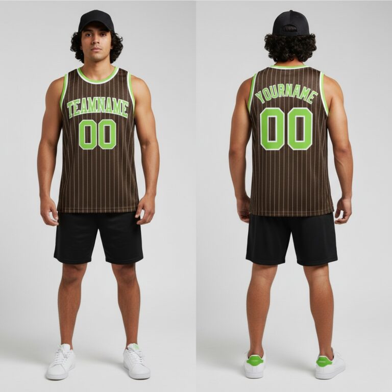 Elevate your team’s look with our Custom Brown Pinstripe Basketball Neon Green Jersey, designed for ultimate personalization. Easily customize your jersey by adding unique names, numbers, and logos to showcase your team’s identity and spirit. Crafted with precision, this jersey combines style and individuality for a professional and cohesive appearance on the court.