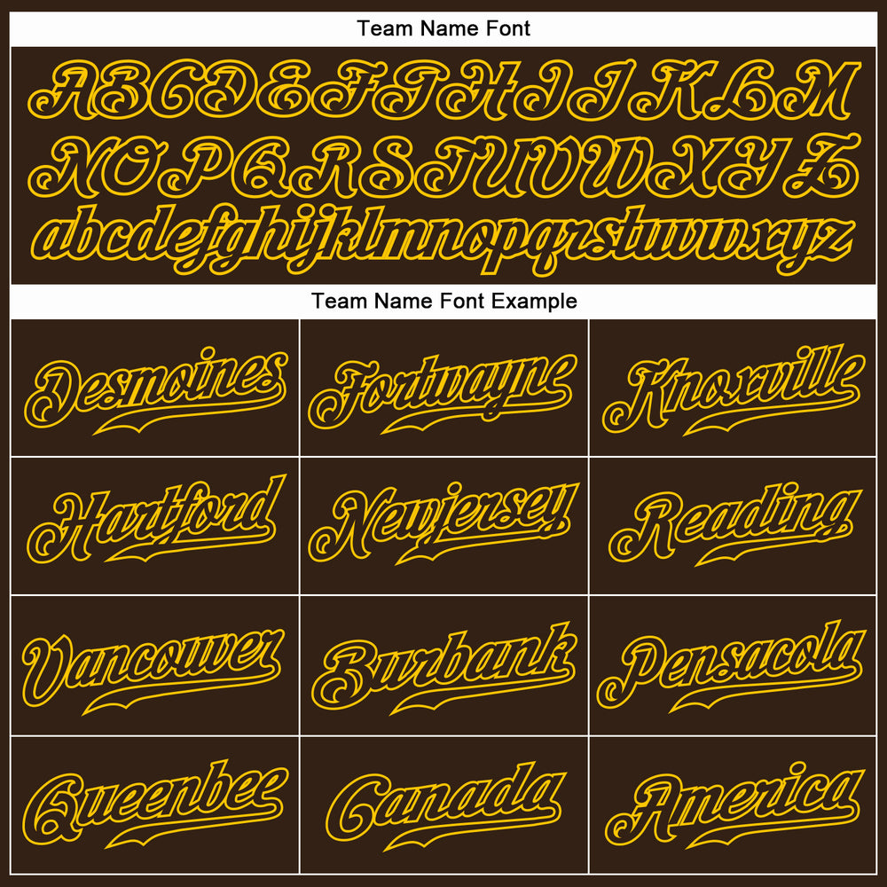 Experience the perfect blend of style and performance with our Custom Gold Brown Baseball Brown Jersey. Designed for ultimate customization, you can easily add your team name, player numbers, and logos to create a truly unique look that stands out on the field. This jersey offers a professional appearance that boosts team unity and pride.