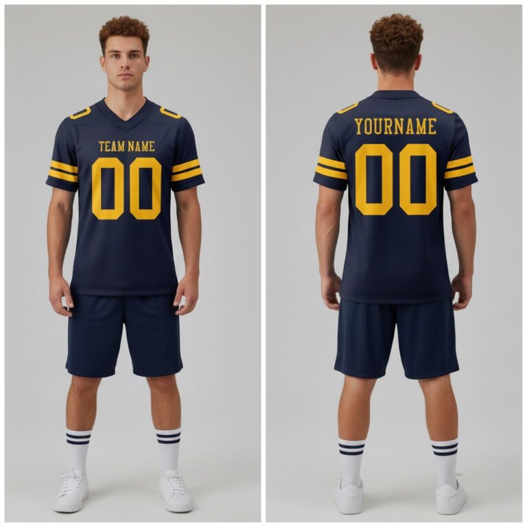 Experience ultimate team spirit with our Custom Navy City Football Gold Jersey. Designed for personalization, you can easily add names, numbers, and logos to create a unique look that stands out on the field. Crafted from breathable, moisture-wicking fabric, this jersey ensures comfort and durability during every game.